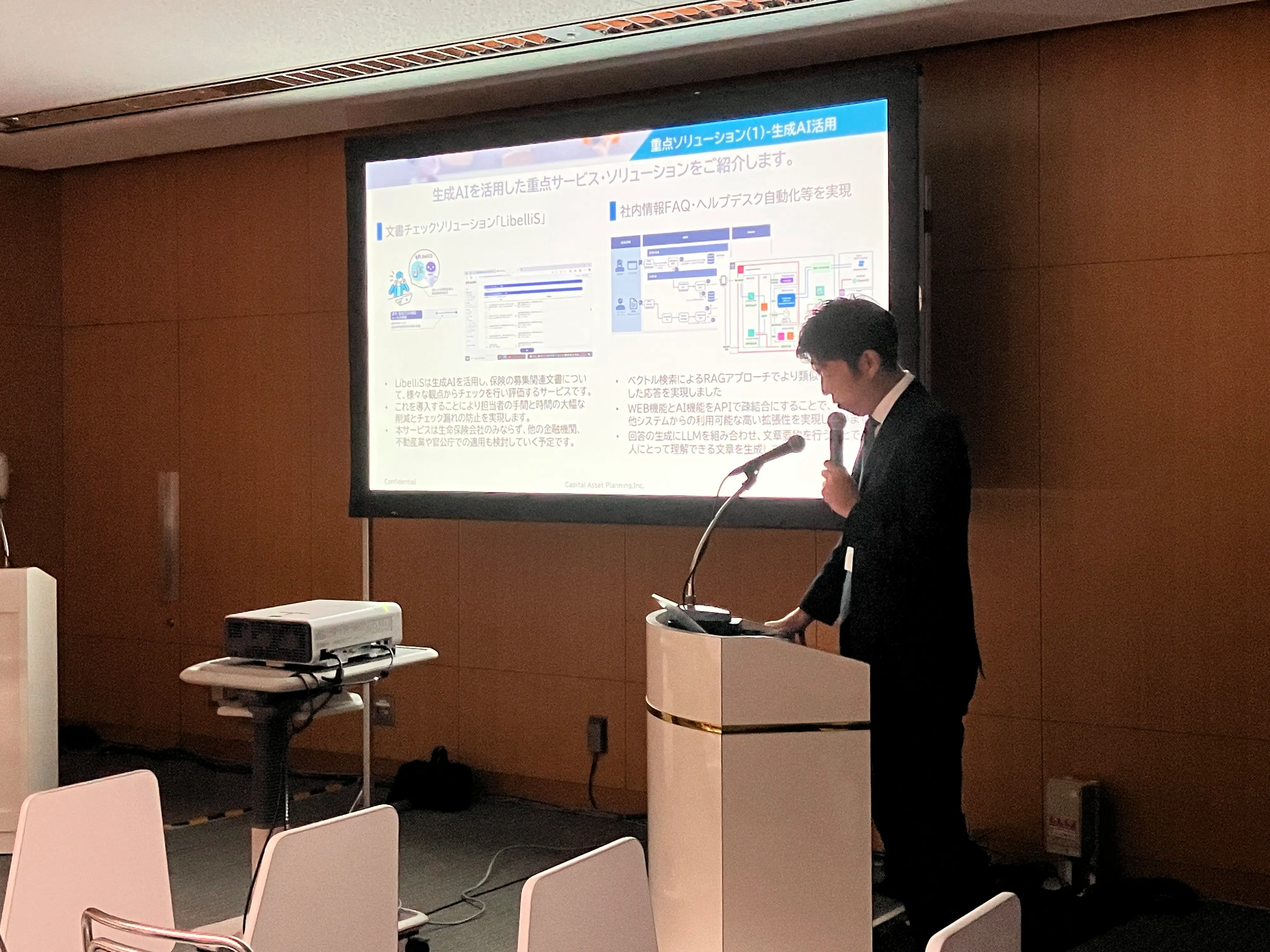 展示ブースでは、「S-Bridge」、生成 AI を活用した文書チェックシステム「LibelliS」、営業ご担当者さまがコンサルティング営業を実施する際に利用できるゴールベースプランニングや、自社株評価ツールの 「Dr.Stock」、 統合資産管理システム 「WealthManagementWorkstation (WMW)」を中心にご紹介しました。 多数のご来場を賜り、誠にありがとうございました。